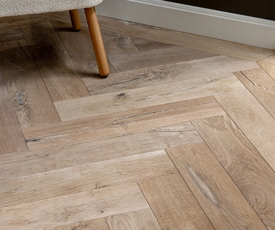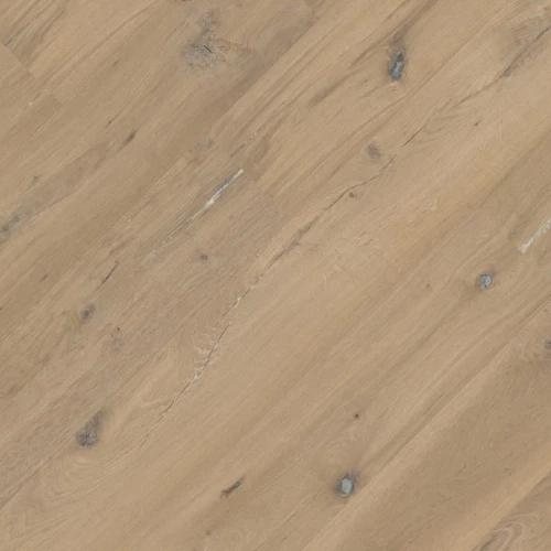 Deze karaktervolle vloer uit de Van Gogh serie heeft een levendig en natuurlijk uiterlijk, gezaagd uit het midden van de stam. Het oppervlak is bewust ruw en onregelmatig gelaten voor een stoere, doorleefde uitstraling. Noesten, scheurtjes en kleurverschillen horen bij dit natuurproduct. Door het ruwe oppervlak is de vloer minder geschikt voor huishoudens met kleine kinderen of kleinere huisdieren. Wij adviseren tien procent extra materiaal bij het leggen, omdat je zelf selecteert welke planken je in de vloer wilt hebben. Kleine hoogteverschillen zijn toegestaan.
