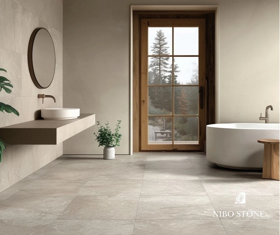 Aeterno is geïnspireerd op de pure schoonheid van natuursteen, met natuurlijke kleurnuances en verfijnde aders die het oppervlak een authentieke en levendige uitstraling geven. Door het subtiele reliëf en de textuur krijgt het oppervlak een natuurlijke gelaagdheid en diepte.