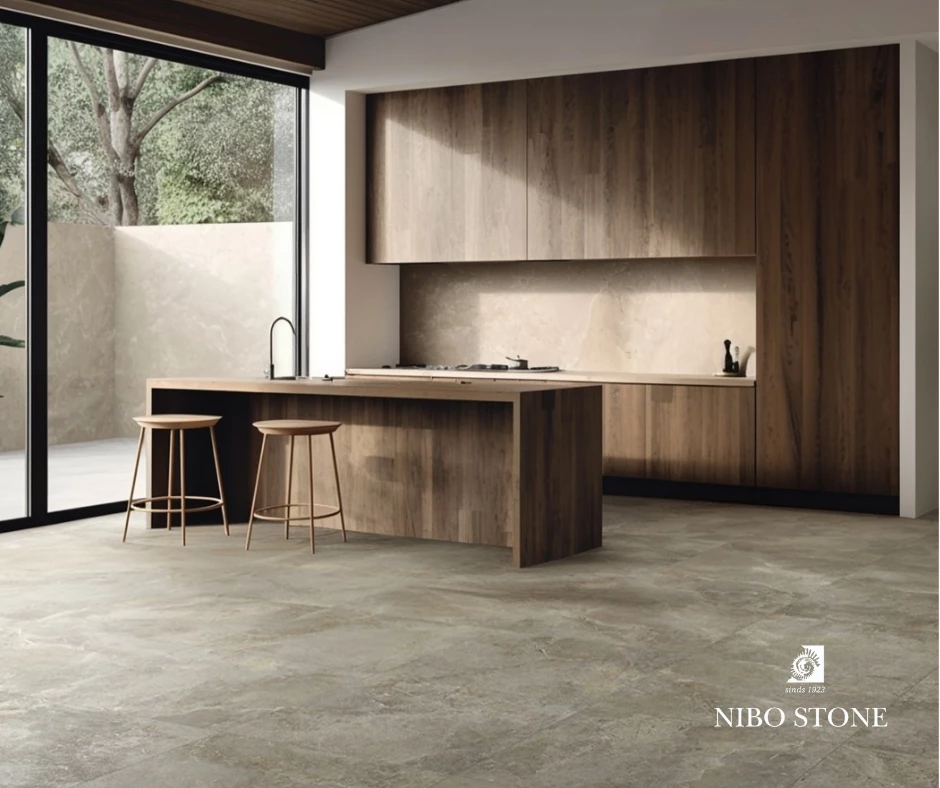 Aeterno is geïnspireerd op de pure schoonheid van natuursteen, met natuurlijke kleurnuances en verfijnde aders die het oppervlak een authentieke en levendige uitstraling geven. Door het subtiele reliëf en de textuur krijgt het oppervlak een natuurlijke gelaagdheid en diepte.